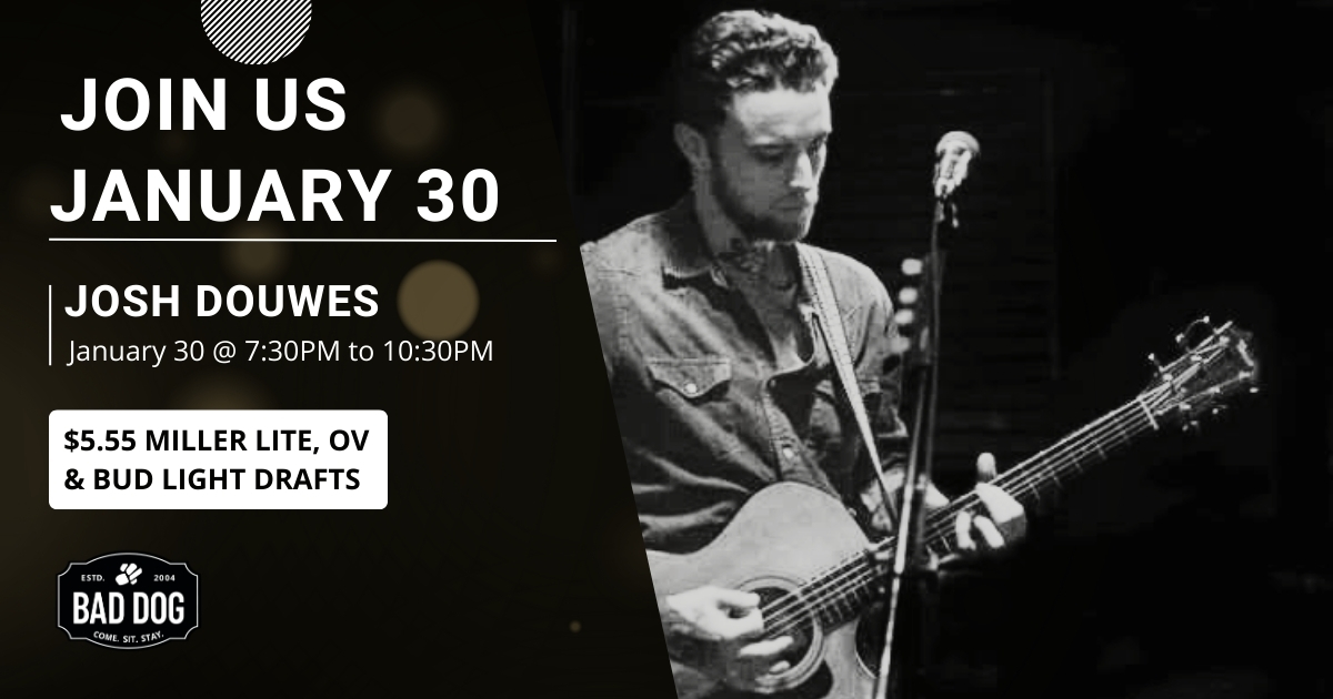 For a fun Friday night! Live music with Josh Douwes tonight starts at 7:30pm.